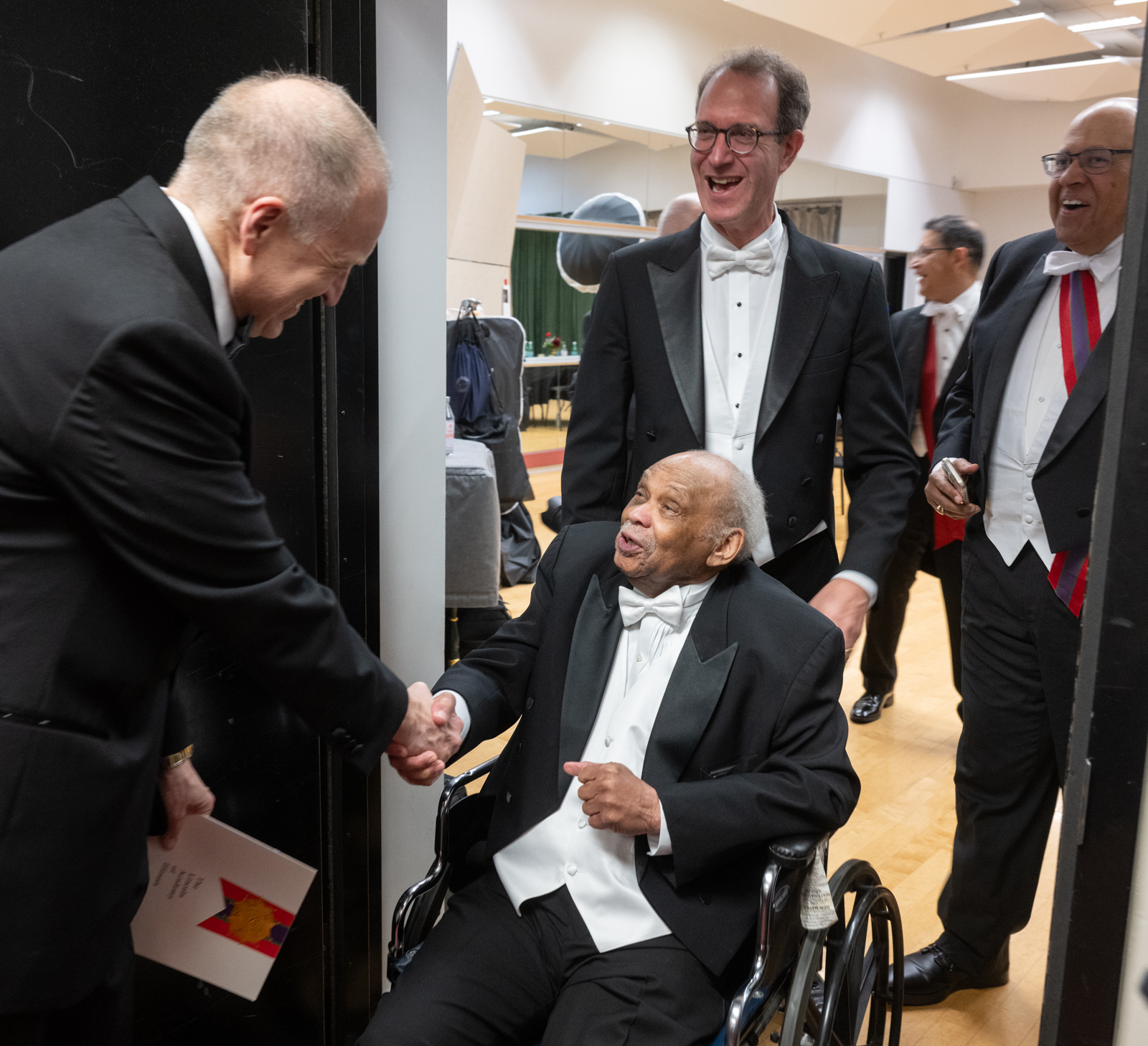 SIU President Dan Mahoney greets Reginald Petty and